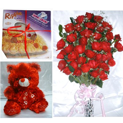 Combo Gift With 24pcs Red roses & 1 Liter IGLOO Cake Ice & 1pcs Very Soft Teddy Bear , ( Teddy Size 6 to 8 inch )Height . & Exclusive 1 Greetings Card with your Message.